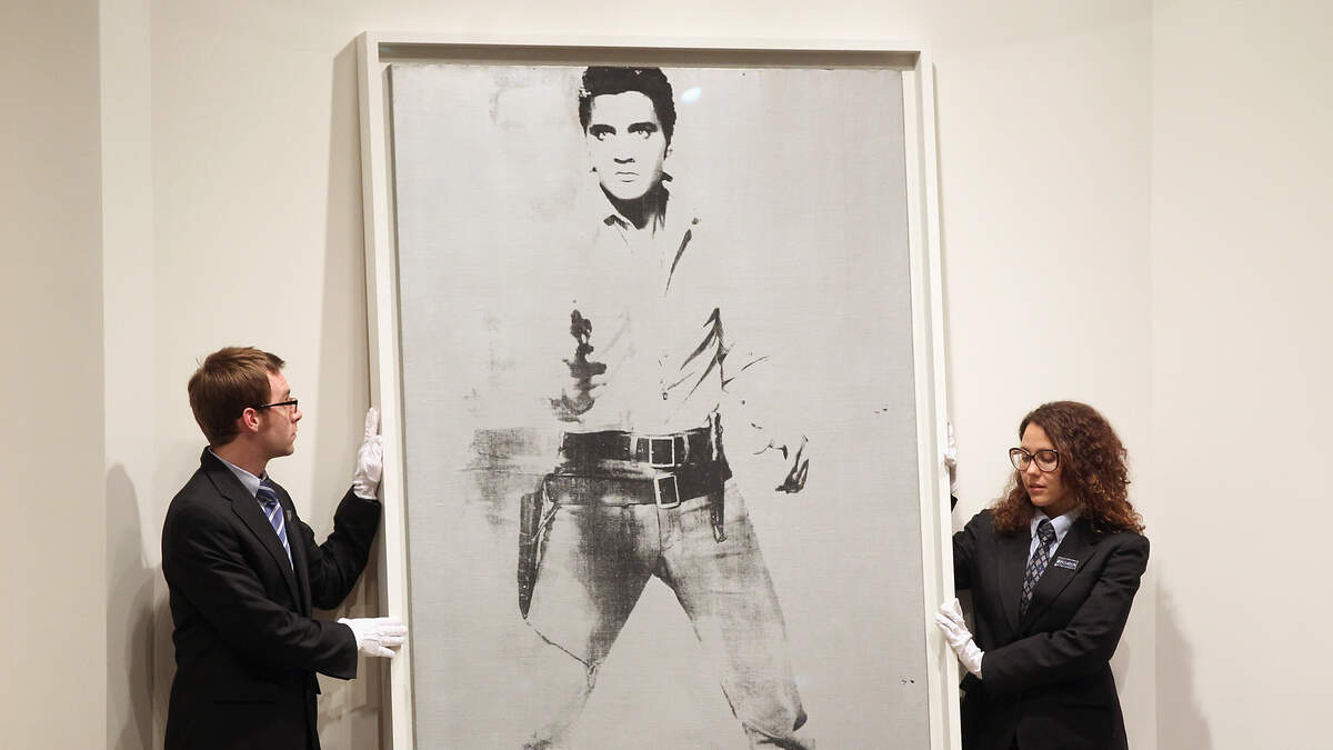 Andy Warhol's only full-length portrait featuring Elvis Presley is going up for sale and it's expected to fetch $30 million. "Double Elvis (Ferus Type)"shows Elvis as he appeared in the 1960 Western "Flaming Star." The black-on-silver portrait will be auctioned off by Christie's in New York on May 17.