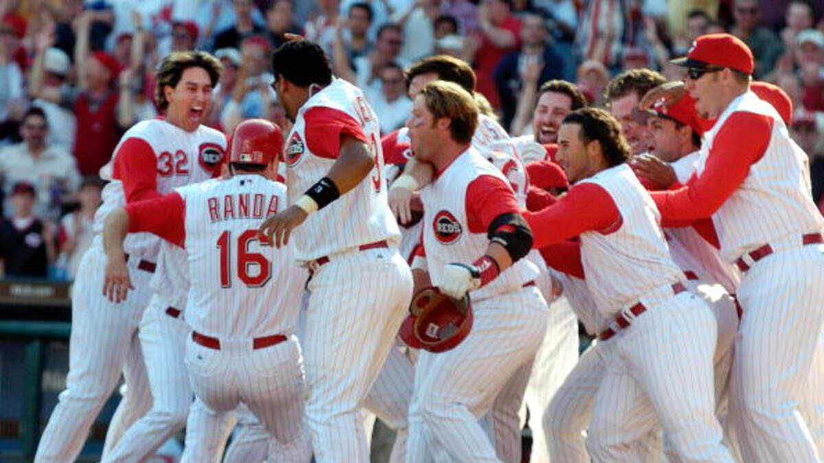 Trailing 6-4 in the bottom of the 9th, Adam Dunn's two-run homer tied the game. Joe Randa then followed with the walk-off winning homer.