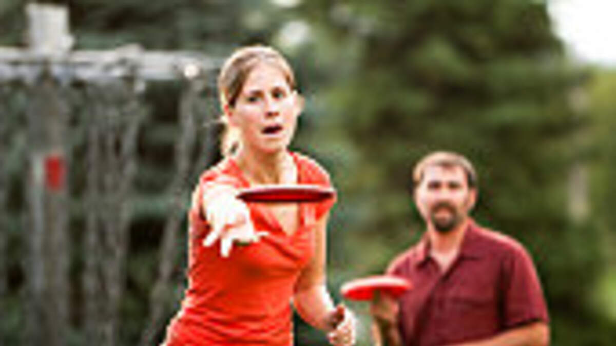 Disc golfer slips but still makes the shot